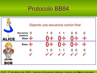 El protocolo BB84 es un esquema de QKD que permite a dos partes generar una clave secreta compartida y detectar cualquier intento de espionaje. Esta tecnología promete comunicaciones seguras que son invulnerables a las técnicas de criptoanálisis clásicas y cuánticas.
